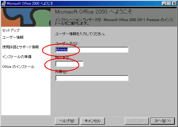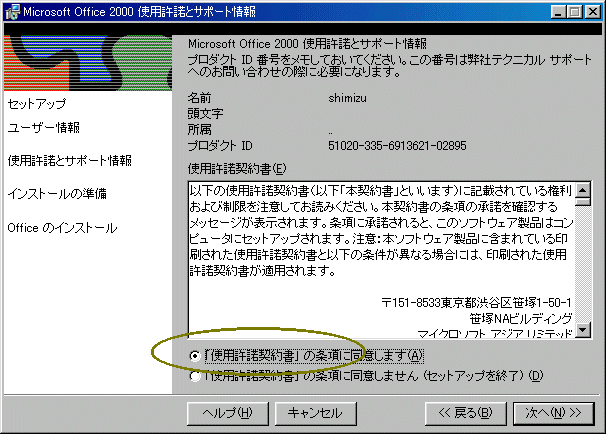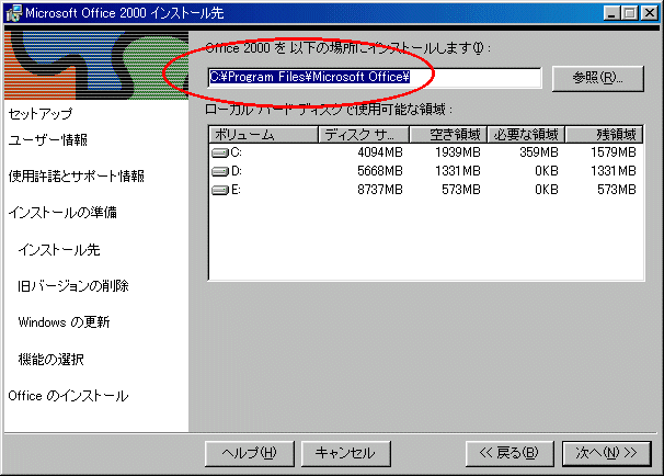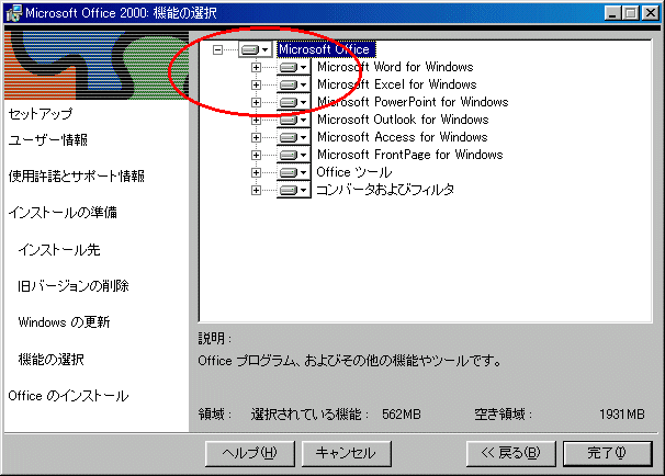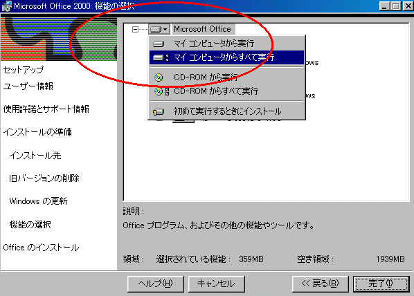 MicroSoft OFFICE2000のインストールについて